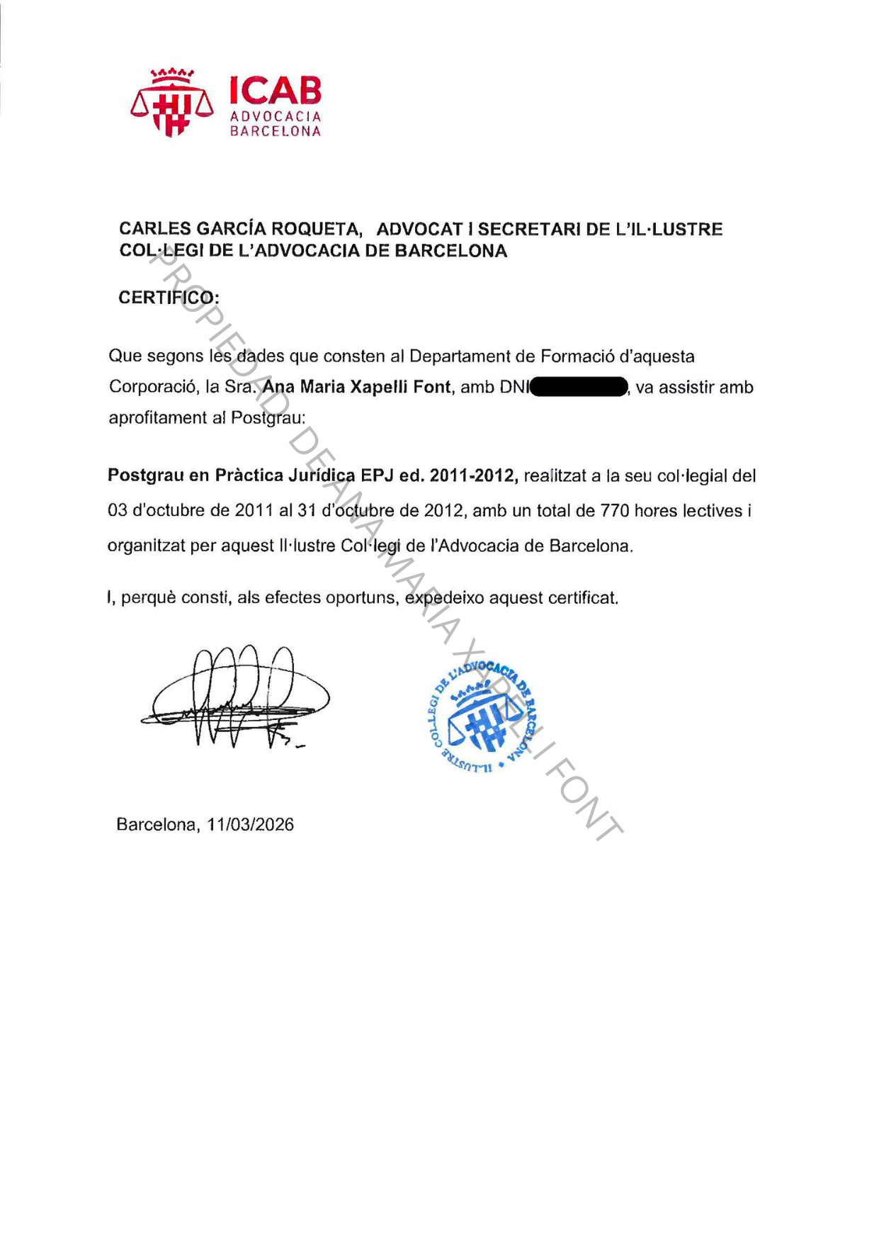 CERTIFICADO ICAB MÁSTER DERECHO DE FAMILIA